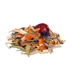 Magic Moon brings together a carefully selected blend of herbs including vibrant lemongrass, warming ginger, crisp spearmint, and delicate verbena. The blend balances bright citrus notes with gentle floral undertones, creating a refreshing and uplifting infusion. Natural fruit pieces of apple, quince, and cranberry add subtle sweetness, while mallow and cornflower blue petals contribute visual beauty and soft texture.